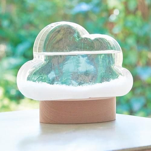 天気や気温などによって液体内の結晶がユニークに刻々と変化していくのを眺めて楽しめます。ガラスと液体、そして木という異素材ミックスが新鮮な、かわいらしいデザインの自然派オブジェです。