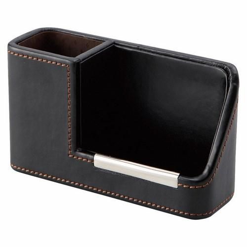 携帯やメガネをまとめて収納。デスクに一つあると便利です。内張りは男性のネクタイをイメージした柄になっています。