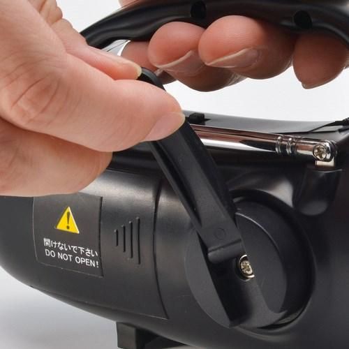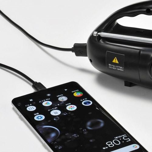 付属のUSB蓄電ケーブルを使用し、本体蓄電可能です。●手回し充電機能付●ライト●AM/FMラジオ●サイレン●スマホ充電