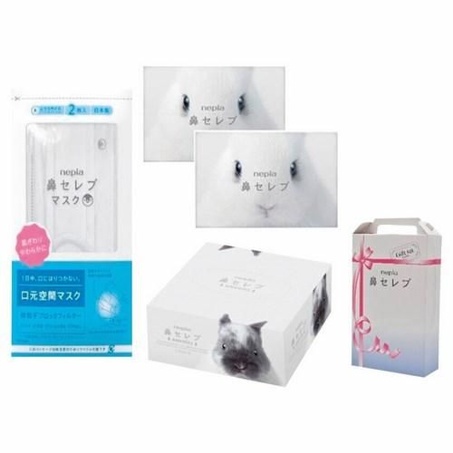 【内容】鼻セレブポケットティッシュ(12W)×2、鼻セレブアメニティティッシュ(62W)・鼻セレブマスク(2枚入)×各1