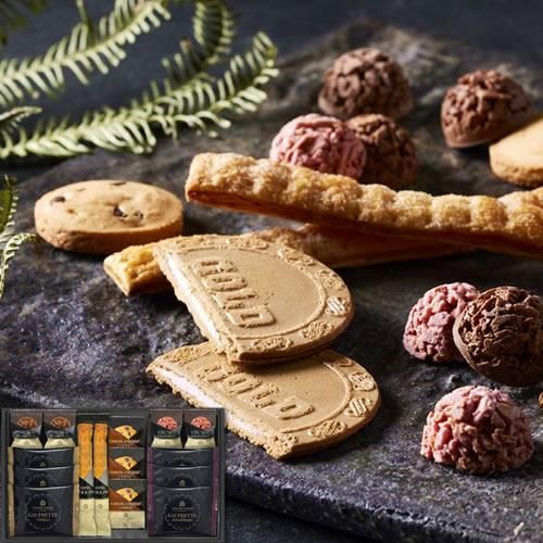 【内容】ロングスティックパイ×2、ゴーフレット(バニラ・ストロベリー)×各3、チョコクランチ(ミルク・ストロベリー)×各2、チョコチップクッキー×3・日本製