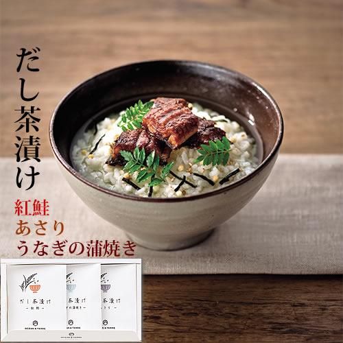 【内容】だし茶漬けの素4.5g×3、紅鮭1切×1、うなぎの蒲焼き13g×1、あさり30g×1、白煎りごま1g×3
