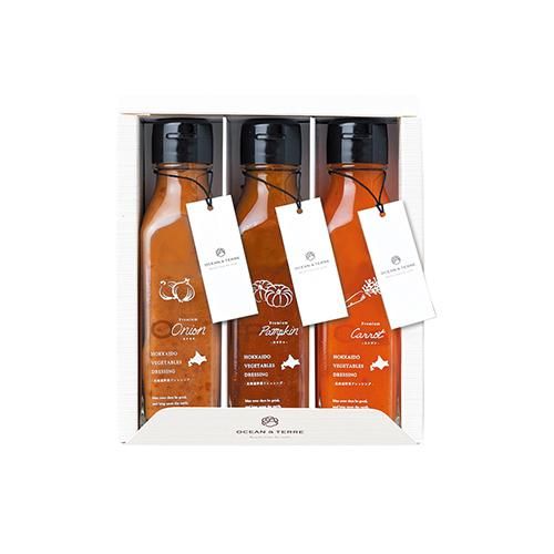 【内容】野菜ドレッシングオニオン120ml×1、野菜ドレッシングパンプキン120ml×1、野菜ドレッシングキャロット120ml×1
