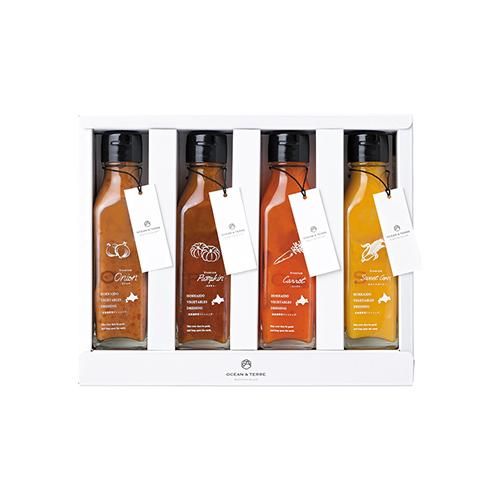 【内容】野菜ドレッシングオニオン120ml×1、野菜ドレッシングパンプキン120ml×1、野菜ドレッシングキャロット120ml×1、野菜ドレッシングスイートコーン120ml×1