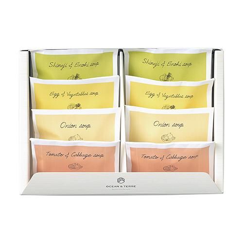 【内容】ザク切りキャベツとトマトのスープ6.9g×2、あめ色玉ねぎのスープ5.2g×2、野菜とたまごのスープ4.7g×2、しめじとえのきの和風スープ5.0g×2