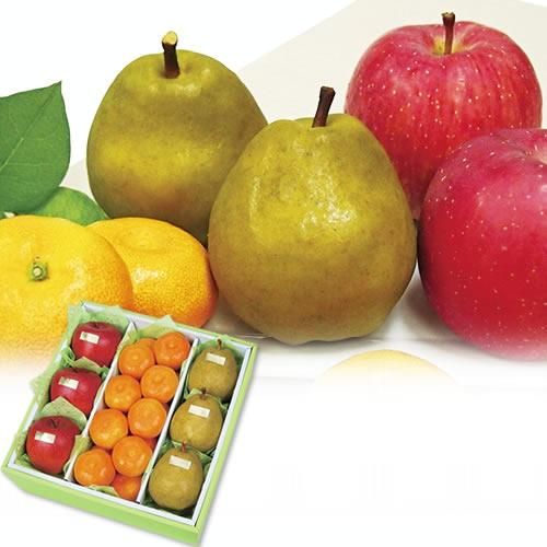 【内容】山形県産洋ナシ・長野県産りんご(各約250g)×各3、和歌山県産みかん約1.4kg