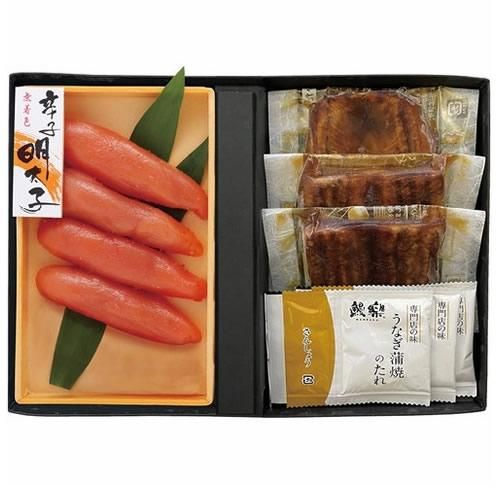 【内容】うなぎ蒲焼(切身)(九州産)(50g)・山椒付きタレ×各3、辛子明太子(150g)×1