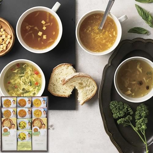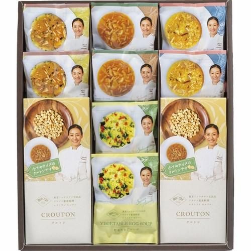 フランス家庭料理レストランmorceau 秋元さくら監修のフリーズドライスープギフト。 豊かな4種のスープとクルトンのギフトセットです。
