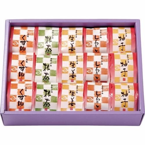 【内容】本葛くずゆ(プレーン・抹茶・生姜・しるこ・柚子)×各3