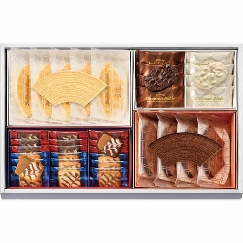 【内容】サンドクッキー×18、アーモンド&マカダミアショコラサブレ×8、バウムクーヘン×5、バウムクーヘン(チョコ)×4