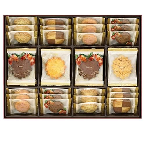 【内容】クッキー(カカオ・チョコレートチップ・ストロベリーチョコレートチップ・ジャンドゥヤ&ホワイト・ダージリンティー)×各6、クッキー(バター・リーフパイ)×各3