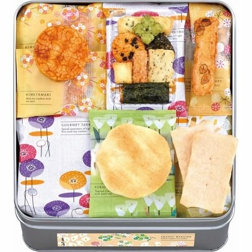 【内容】姫てまり直火炊き醤油×8、かるやき(2枚)・アーモンドそふと直火炊き醤油×各7、ぐるめ探訪・ぷかぷか煎だし塩×各4