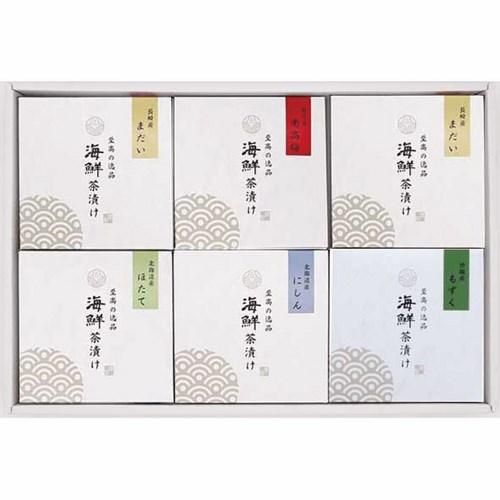 【内容】長崎産まだい水煮×2、紀州産南高梅梅干し・北海道産ほたて水煮・北海道産にしん甘露煮・沖縄県産もずく(2.5g)×各1、だしつゆ(30g)・茶漬け薬味(0.5g)×各6