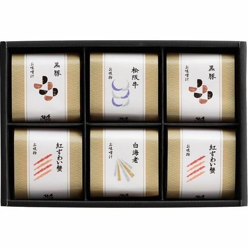 【内容】本格和風だしお吸物(紅ずわい蟹)・本格和風だしお味噌汁(黒豚)×各2、本格和風だしお吸物(松阪牛)・本格和風だしお味噌汁(白海老)×各1