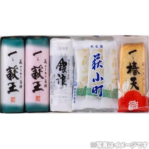 【内容】一萩王かまぼこ大(白・紅)各160g×1、銀浪かまぼこ大(白)160g×1、萩小町ちくわ3本入×1、一椿天3枚入×1