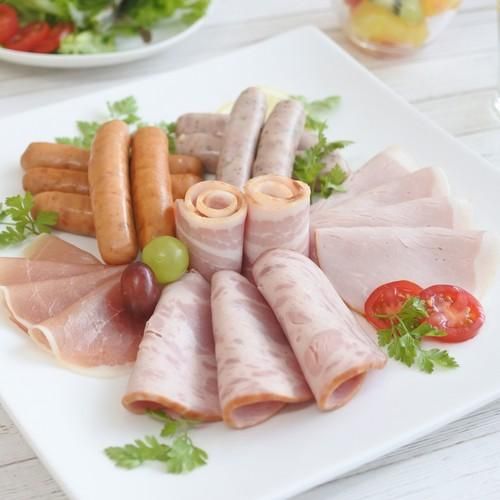 【内容】熟成ビアシンケン60g・熟成あらびきウインナー58g×各2、熟成ロースハムスライス42g・熟成ベーコンスライス45g・ロース生ハムスライス30g・熟成ハーブウインナー58g×各1